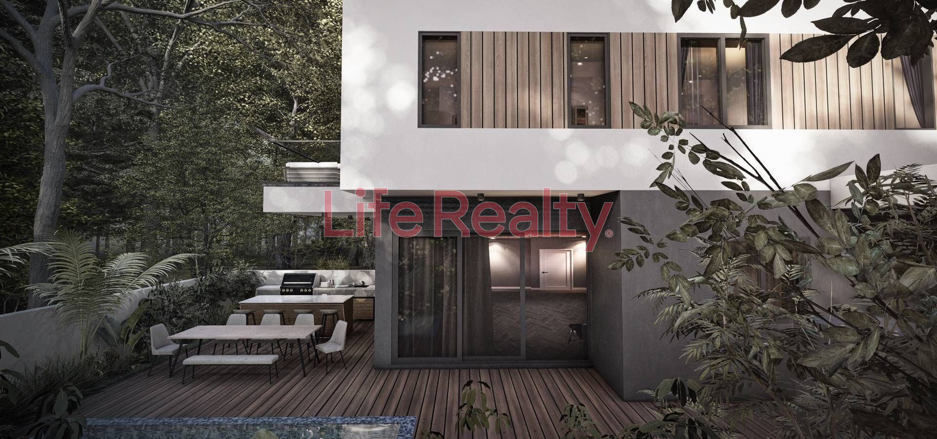 This stunning villa features a spacious, open-plan living and dining area that flows seamlessly into a modern kitchen, along with a convenient guest WC, creating a warm and functional environment for daily living. The upper floor offers three generously sized bedrooms, including a master bedroom with an en-suite bathroom and a walk-in closet. A separate large family bathroom and a laundry room add to the comfort and convenience on this floor. Outside, the villa boasts a private swimming pool and a barbeque area, providing an ideal space for relaxation and entertaining.
