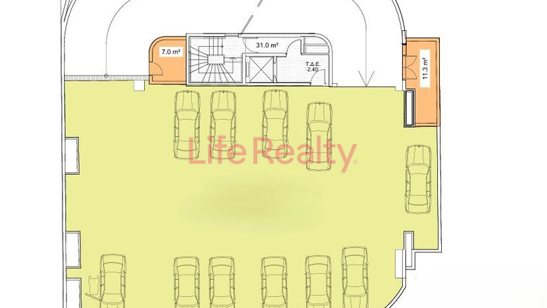 The building comprises five floors designated for office use, along with two ground-floor shops. Additionally, it includes two underground levels designated for parking. Notably, one of the shops, currently operating as a café, is leased at €4,630 per month, while the third floor is also rented at €5,100 per month, providing immediate rental income.