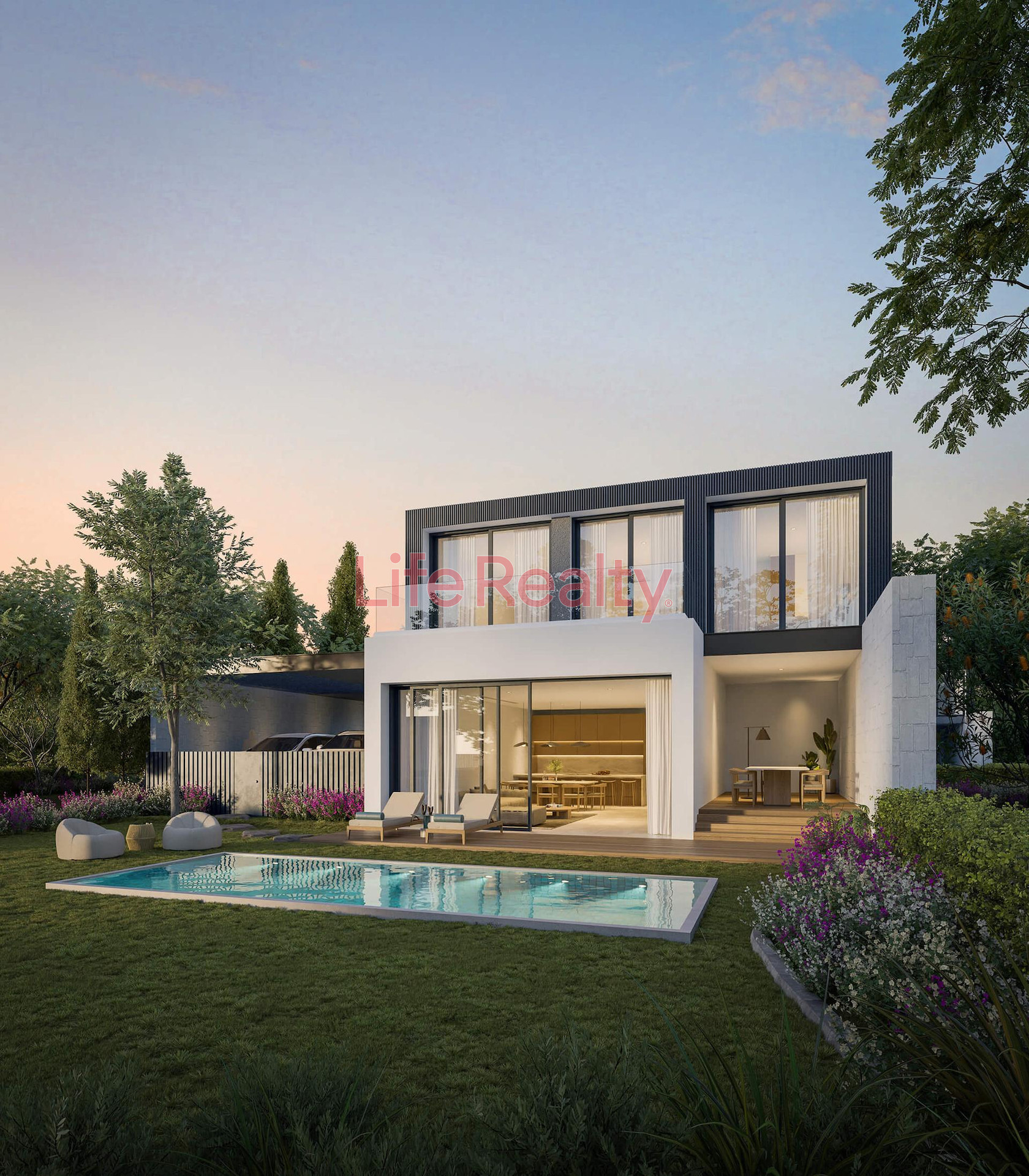 Featuring elegant finishes throughout, the home exudes sophistication and comfort, creating a serene and luxurious lifestyle. The ground floor features a spacious, open-plan living and dining area that seamlessly connects to a modern kitchen, along with a guest bathroom.