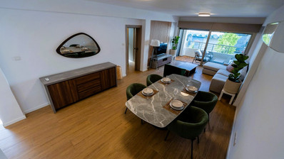 The apartment features a spacious open-plan living and dining area, a modern kitchen, two well-appointed bedrooms, including a master bedroom with an en-suite bathroom and a guest W/C.
