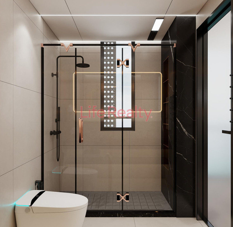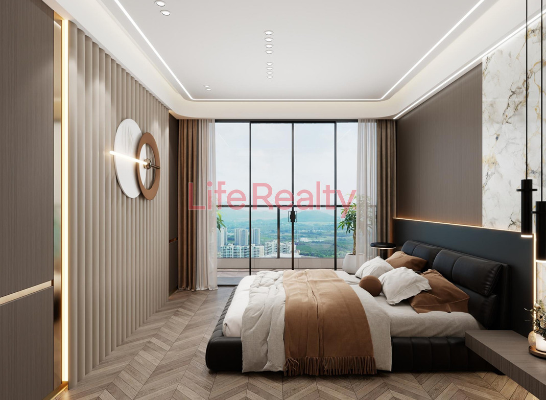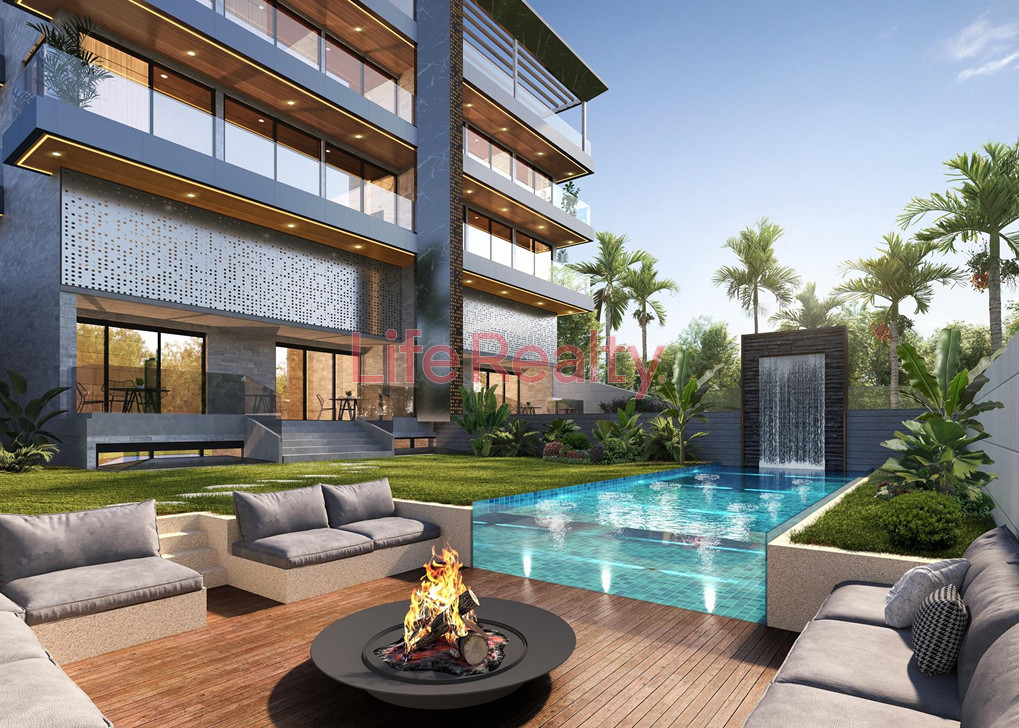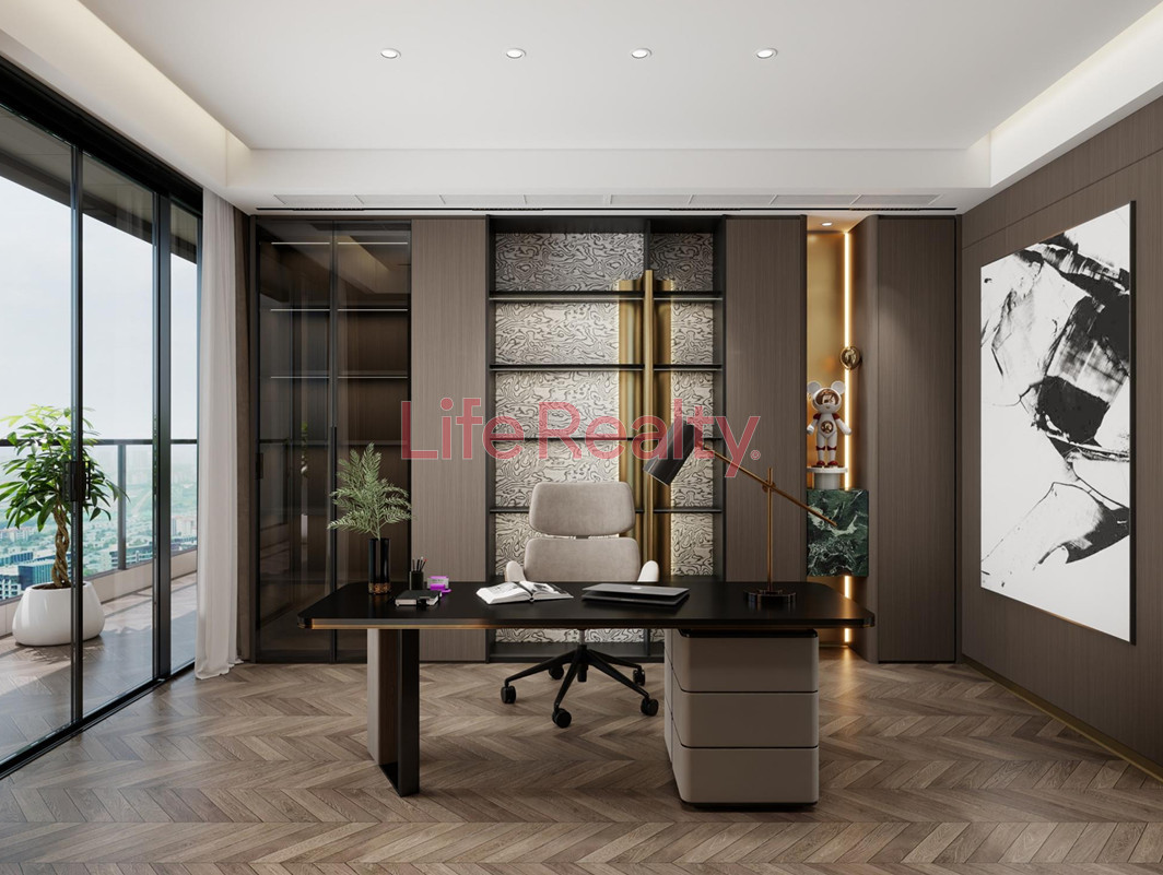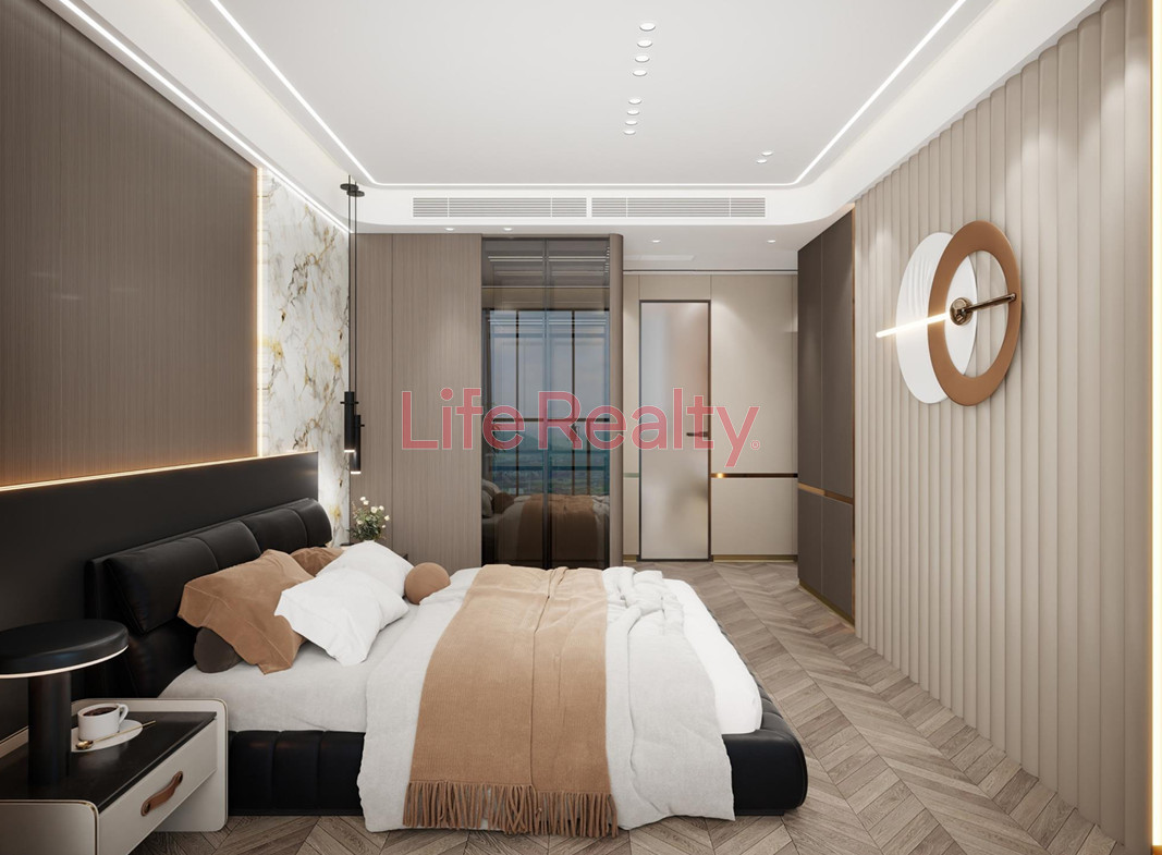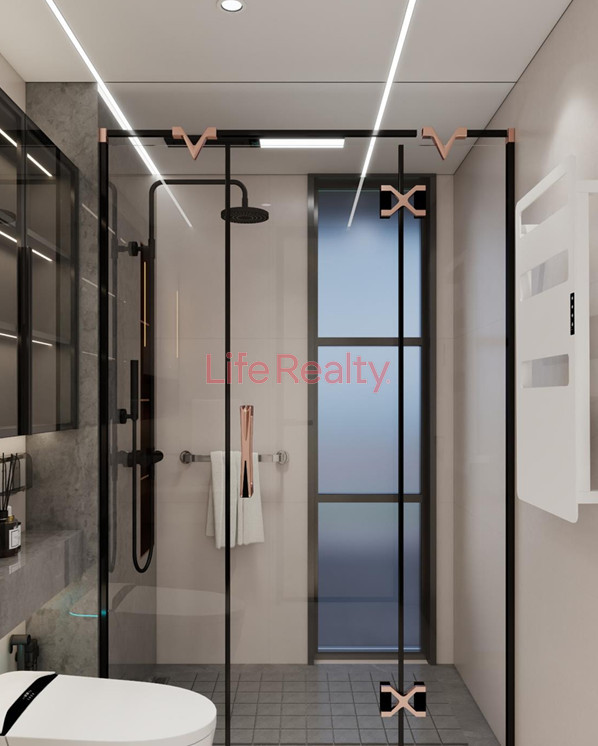 The villa is thoughtfully designed across five levels. The ground floor features a spacious living room seamlessly connected to a modern kitchen and dining area, along with a guest W/C. The first floor comprises three bedrooms, including one with an en-suite bathroom, and a separate family bathroom.