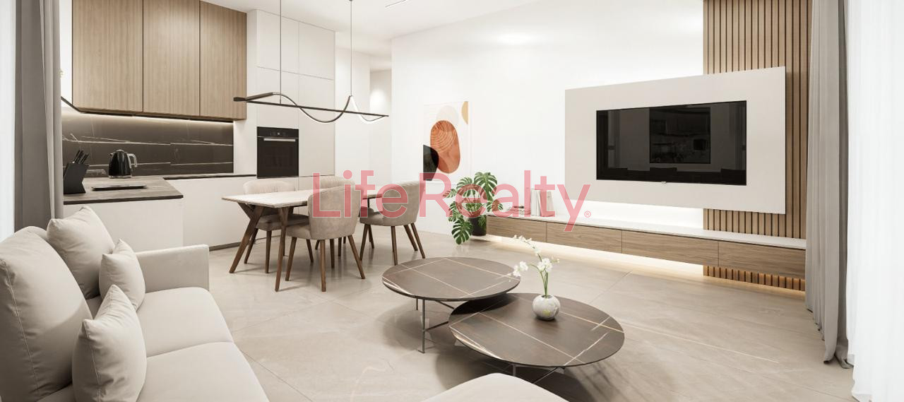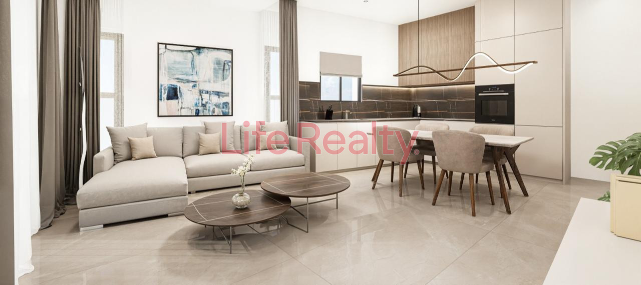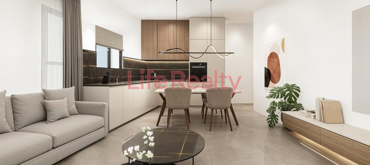 Each apartment features a well-designed living and dining area, an open-plan kitchen, and practical indoor spaces with modern finishes. The apartment also includes a covered veranda, ideal for everyday use.